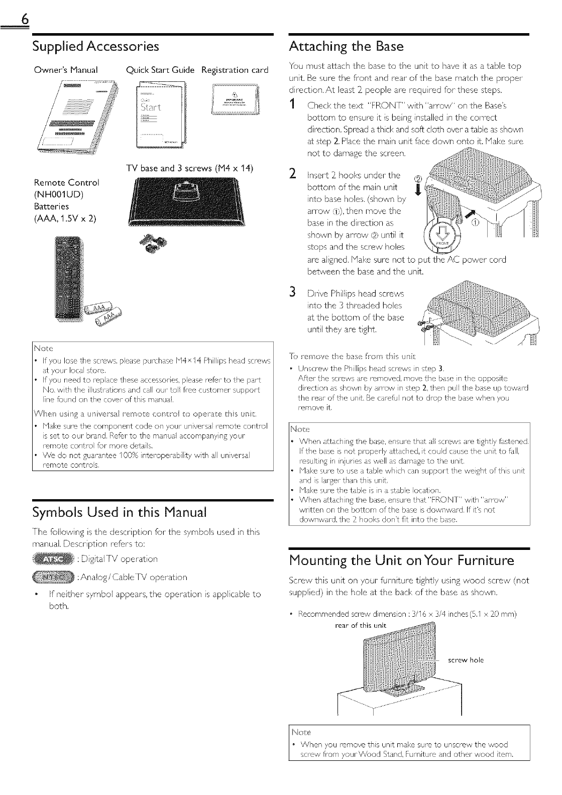 •Jhe recommended Wall Mount Brad<et Kit (sold separately)