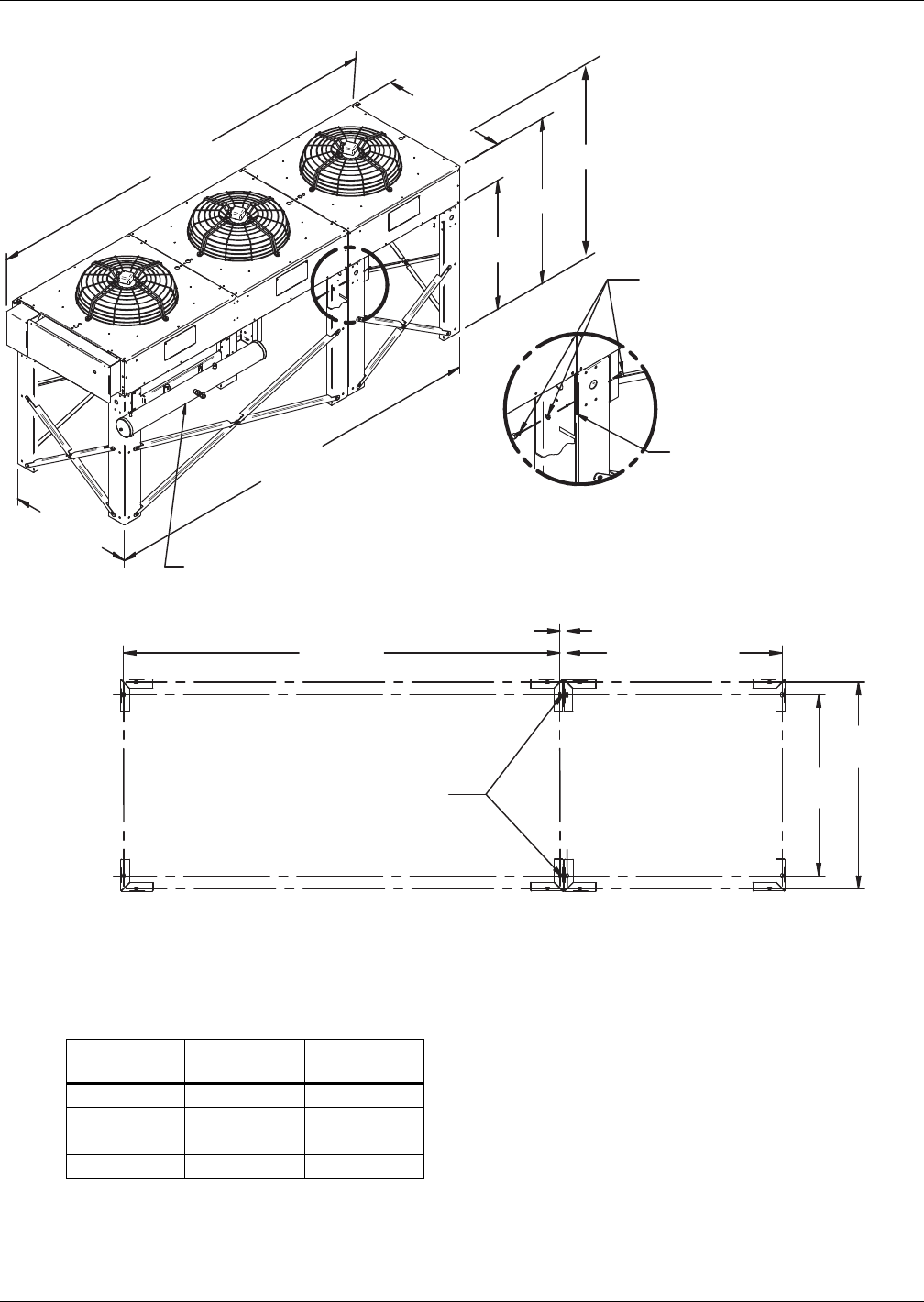 - Figure 4 Condenser planning dimensions—MCM040, MCM080, MCM160 with/without Liebert Lee-Temp™