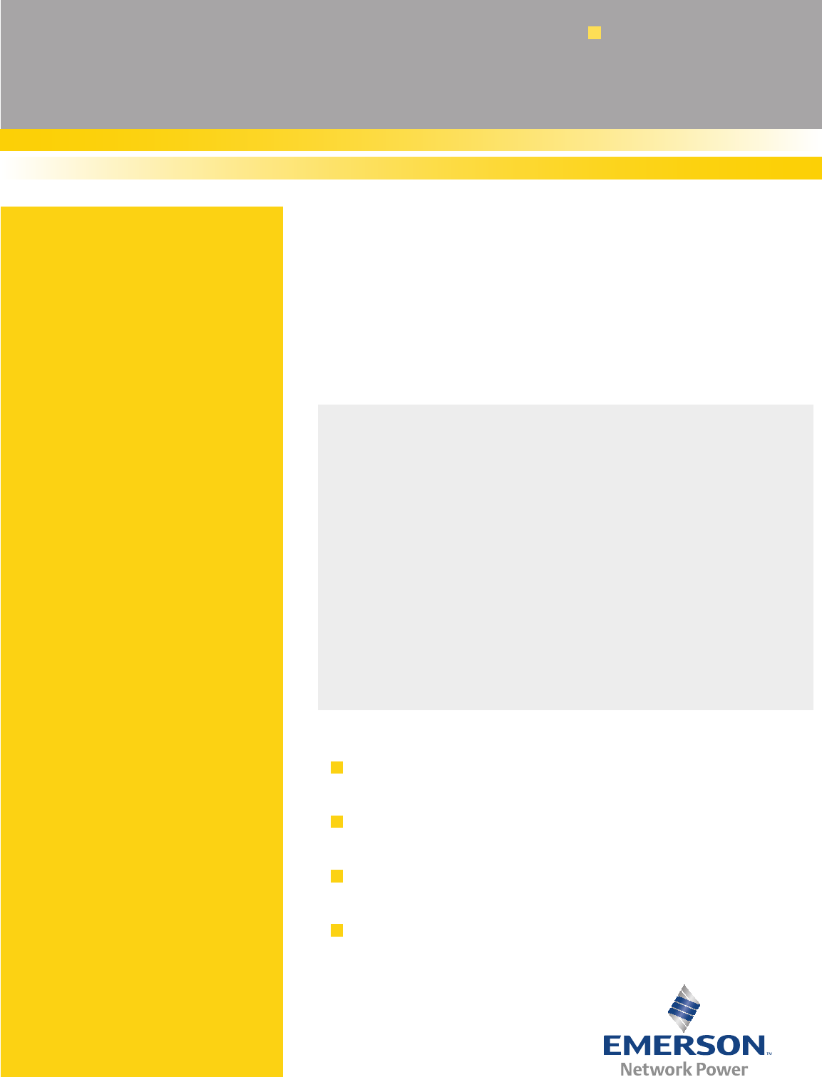 Business-CriticalContinuity,EmersonNetworkPowerandtheEmersonNetworkPowerlogoaretrademarksandservicemarksofEmersonElectricCo.©2008EmersonElectricCo.
