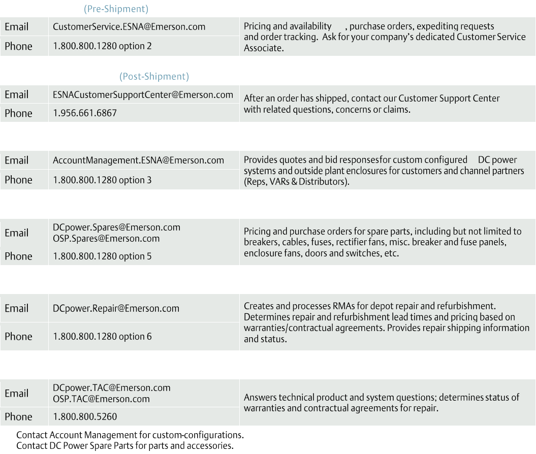 call 1-800-800-1280 option 7, email ES.Services@Emerson.com or visit EmersonNetworkPower.com/EnergySystems.