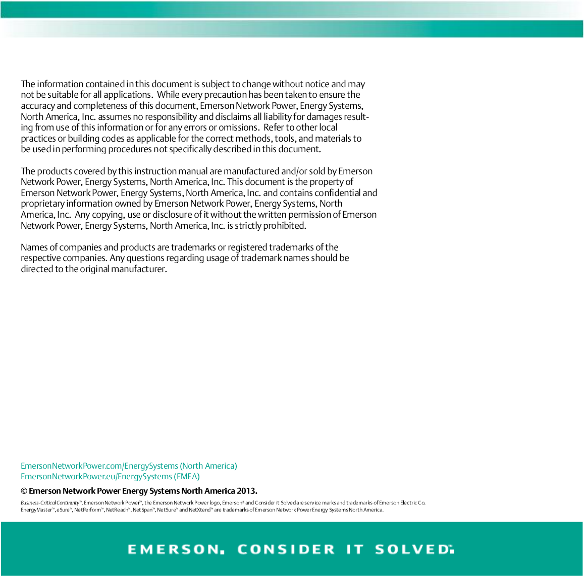 To learn more about service offerings from Emerson Network Power, please contact your sales representative,