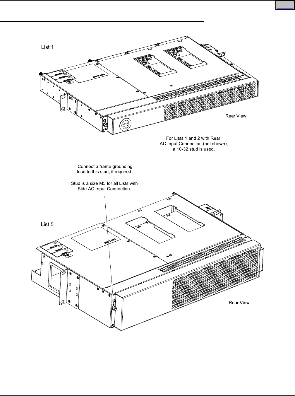 - Shelf Frame Grounding Stud (both 1U and 2U Panels, List 1 and 5 shown)