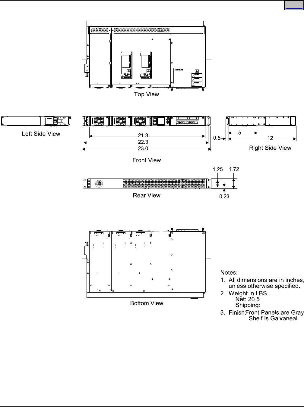 - Optional 19” to 23” 1RU Rack Adapter Kit, P/N 540993