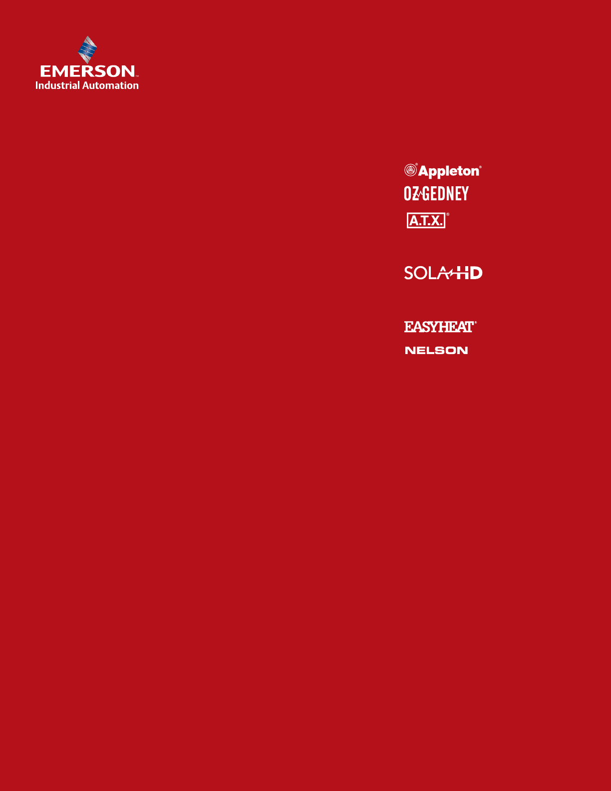 The Appleton, O-Z/Gedney, ATX, SolaHD, EasyHeat, Nelson and Emerson logos are registered in the U.S. Patent and Trademark Offi ce. All other product or service names are the property of their registered owners.