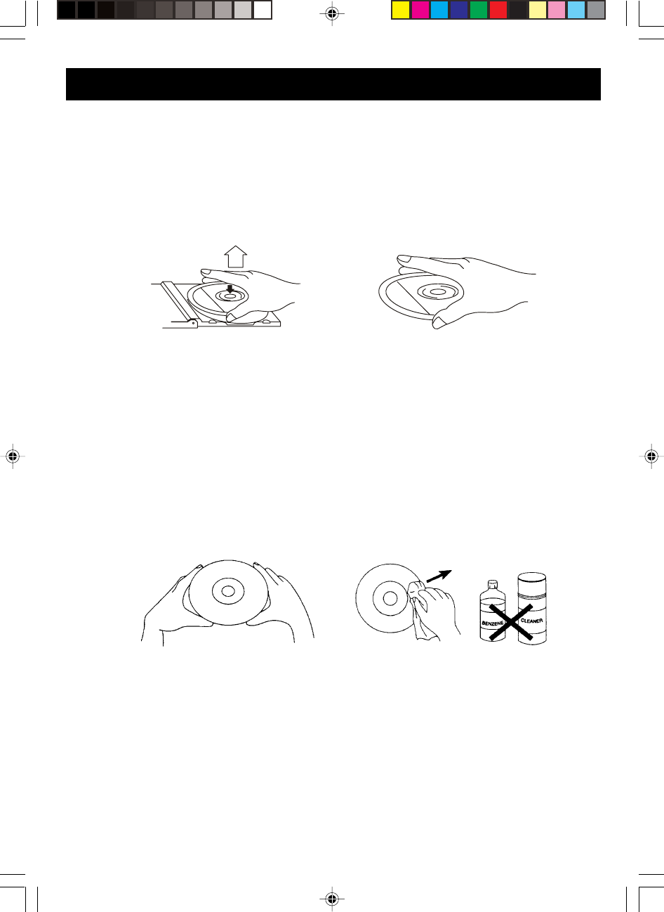 • Fingerprints and dust should be carefully wiped off the disc’s recorded surface with a
