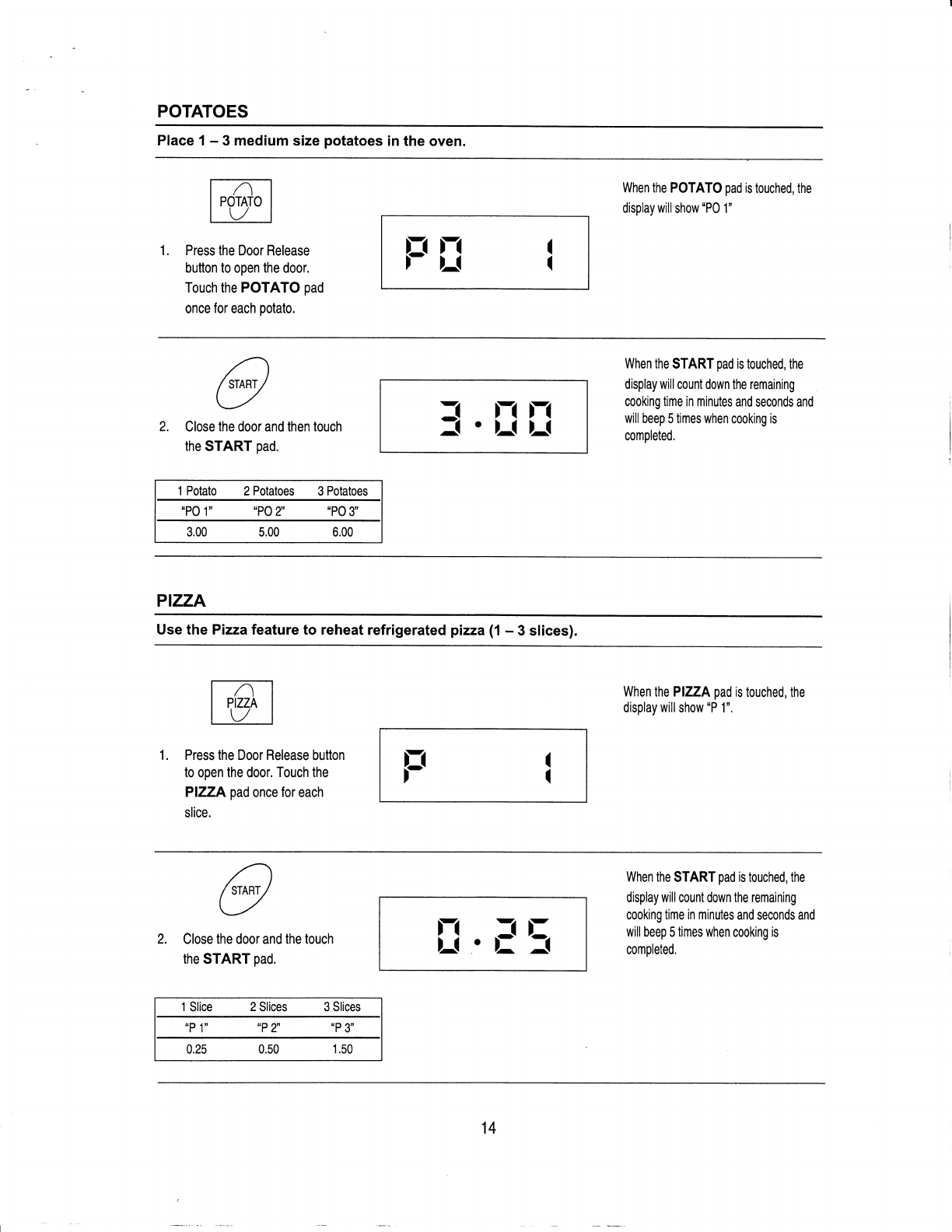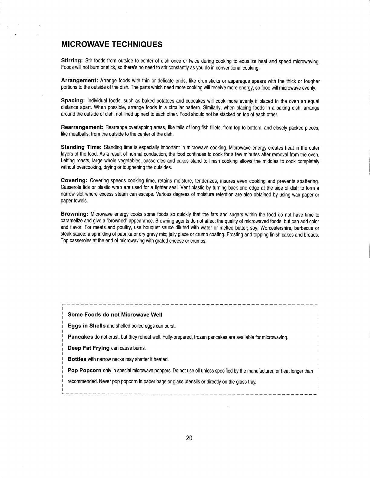 same amount of each kind ol food for more even heating. Mashed potatoes will heal quicker if spread slightly and hollowed, with
