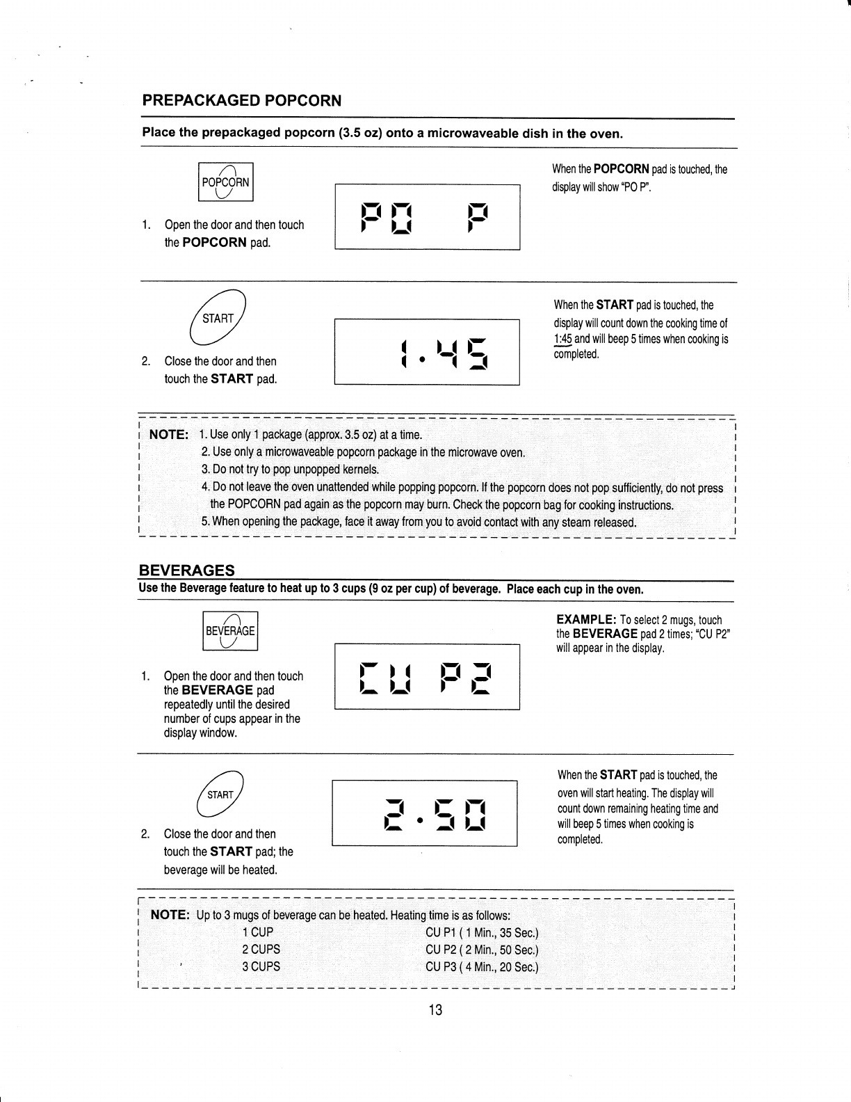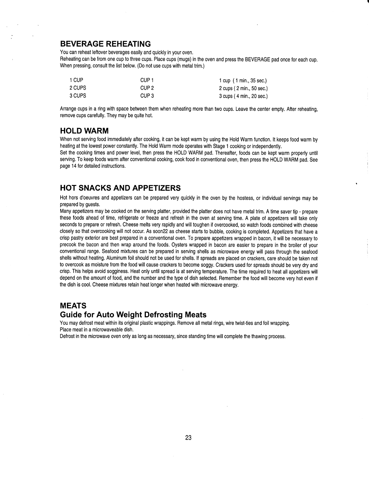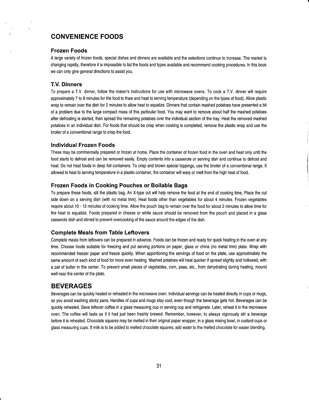 Beverages can be quickly heated or reheated in the microwave oven. lndividual servings can be heated directly in cups or mugs,