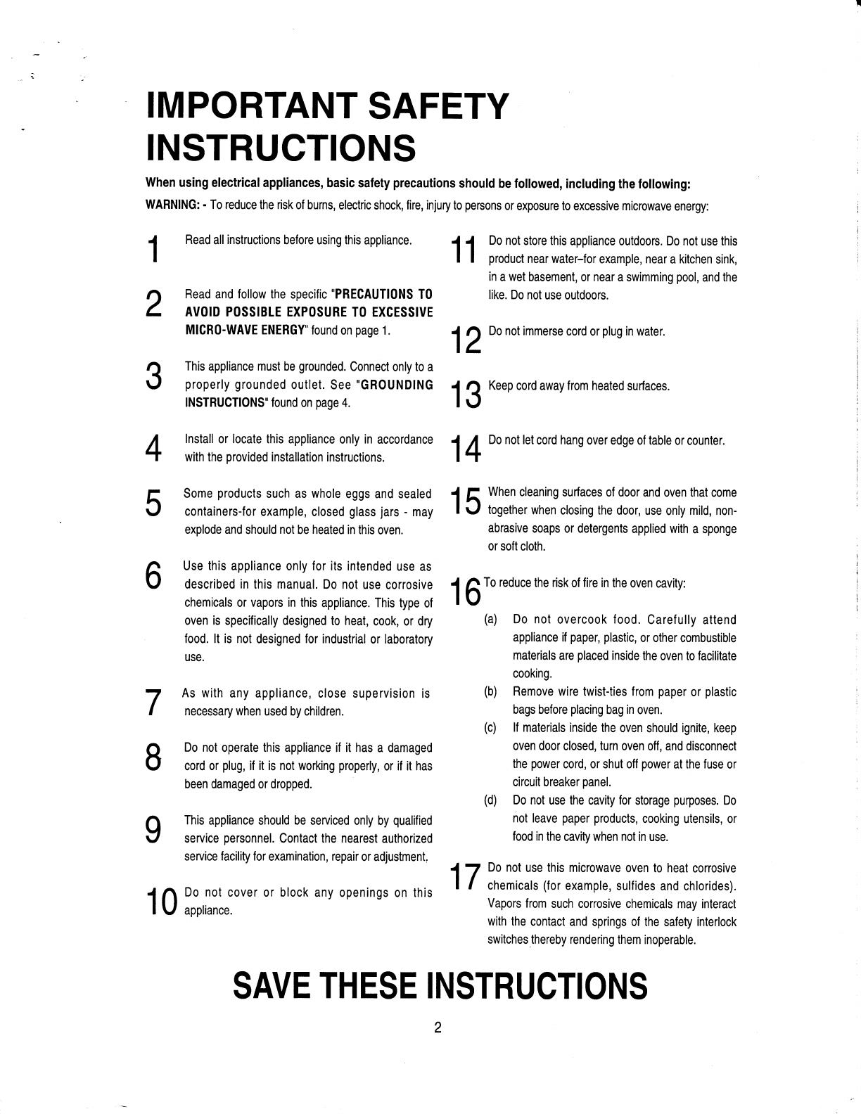 WARNING: - To reduce the risk ol bums, electric shock, fire, injury to peftions or exposure lo excessive microwave energy: