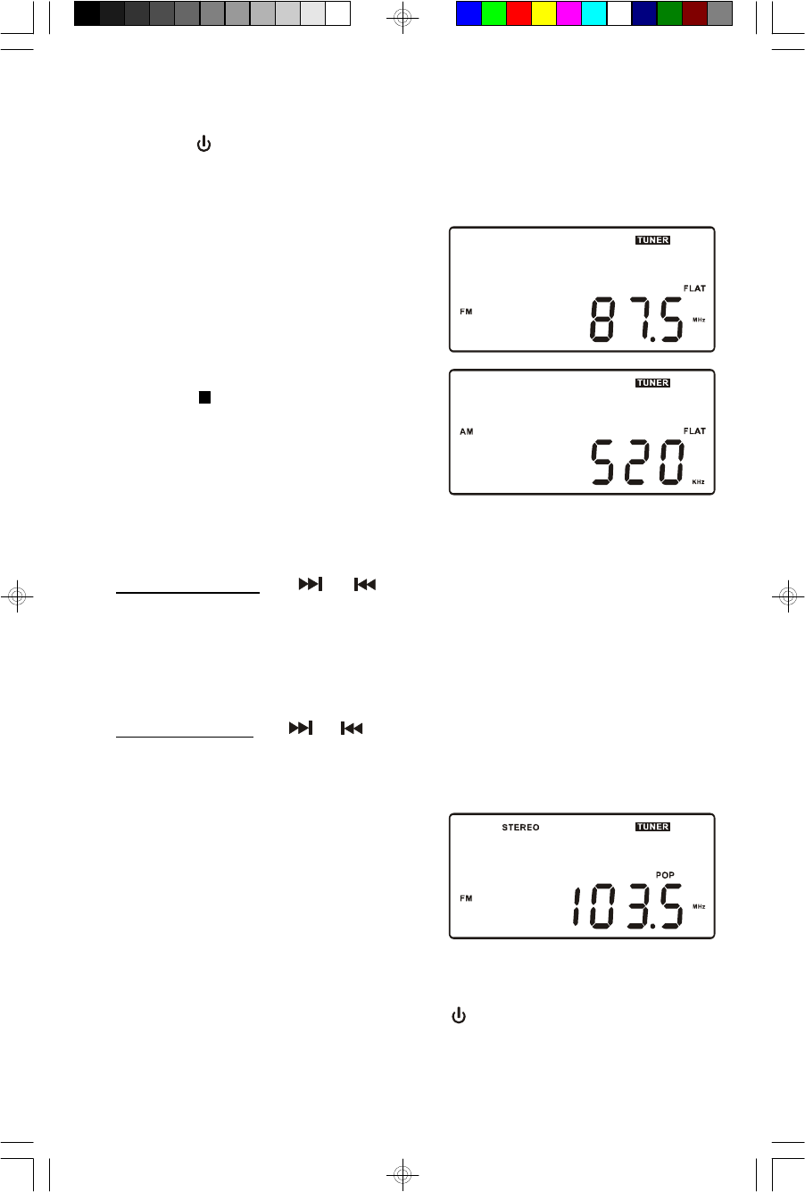 tuner memories, the clock and the timer settings will be erased after you press