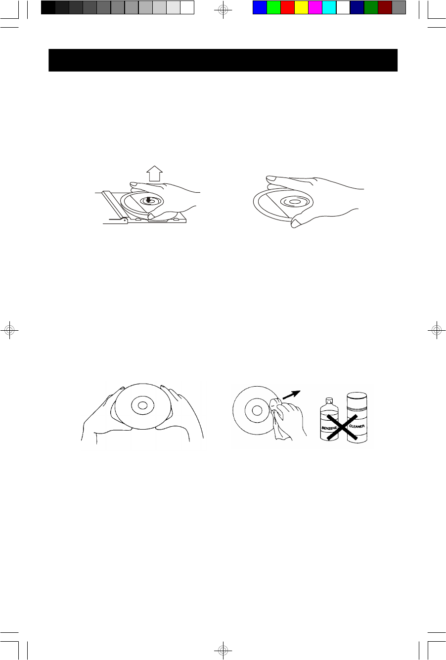 •Never write on or affix labels to the surface of compact discs.