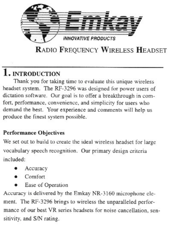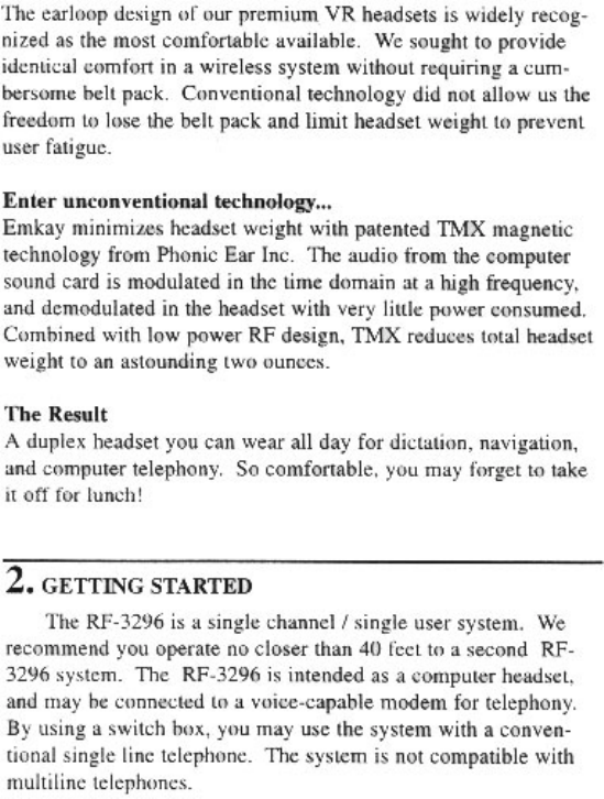 Emkay Innovative 3296 Base Station for Wireless Microphone User Manual Correct
