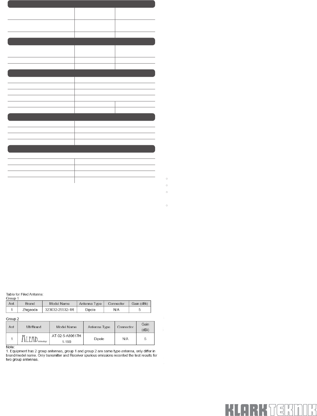 antenna listed below. The required antenna impedance is 50 ohms. The