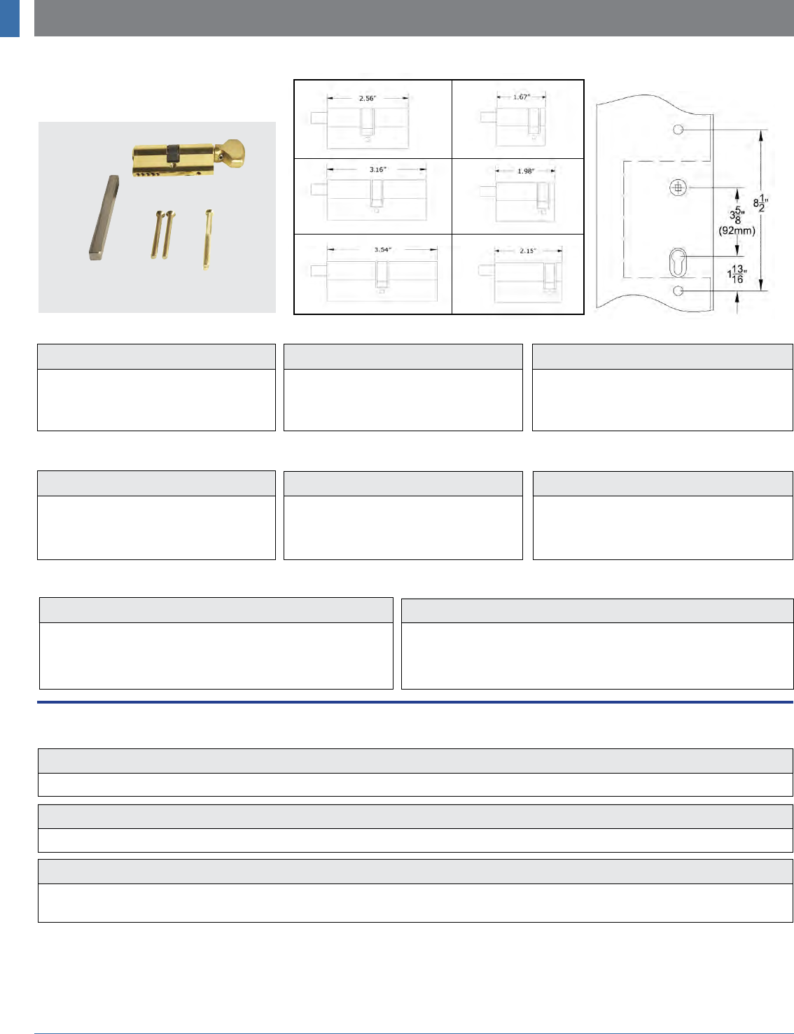 DOOR CONFIGURATION #7 Specification Sheet for Trim and Cylinder Styles