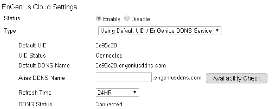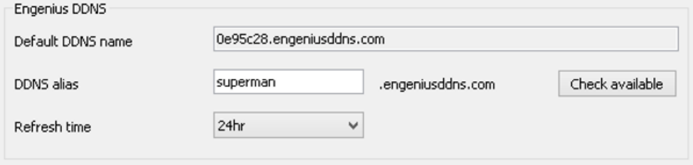 Internet possible using camera DDNS name (0e95c28.engeniusddns.com).
