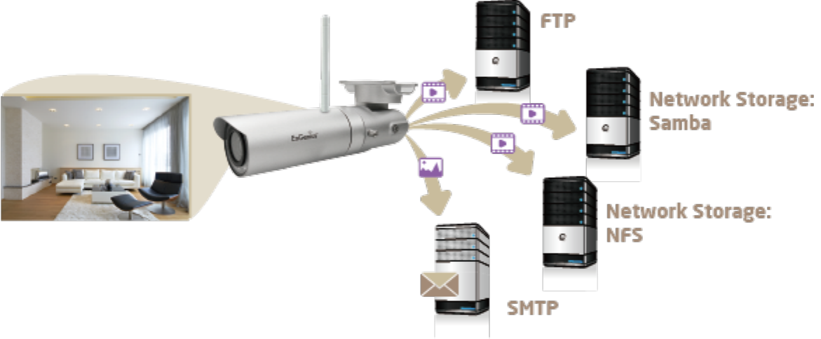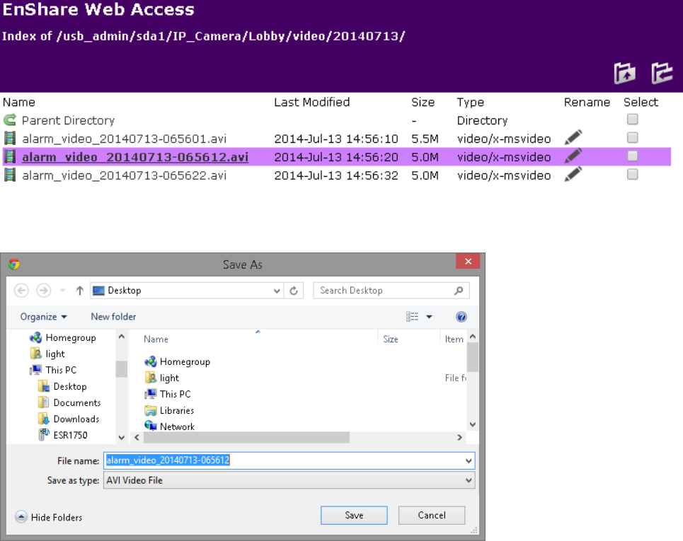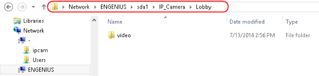 You can access the media files located under \\ENGENIUS\sda1\IP_Camera\Lobby