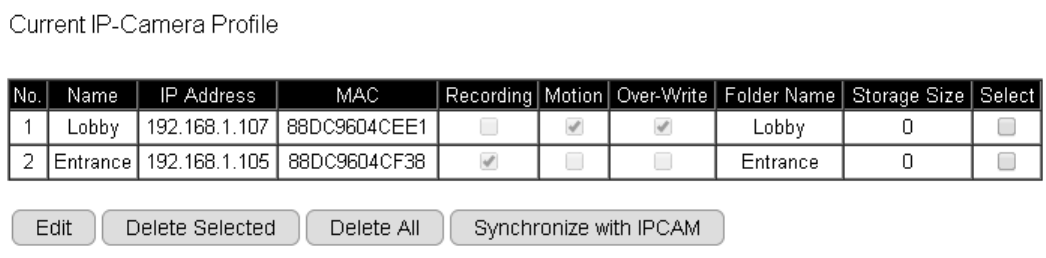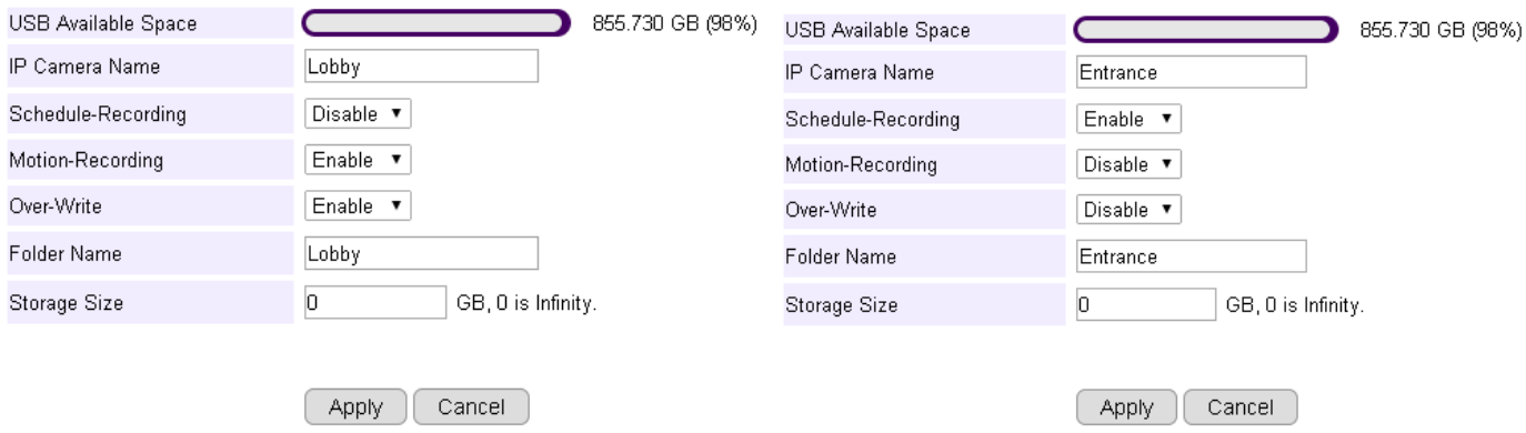In the previous example, the Lobby camera profile defines the path /sda1/IP_Camera/Lobby/