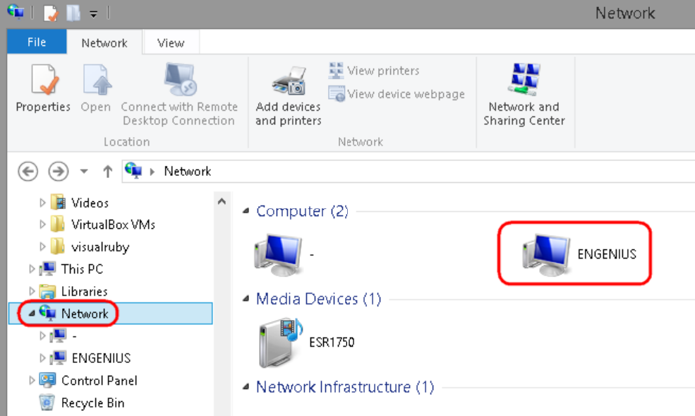 Once enabled Samba on the EnGenius router, you should find the router under Network in your File Explorer as shown above.