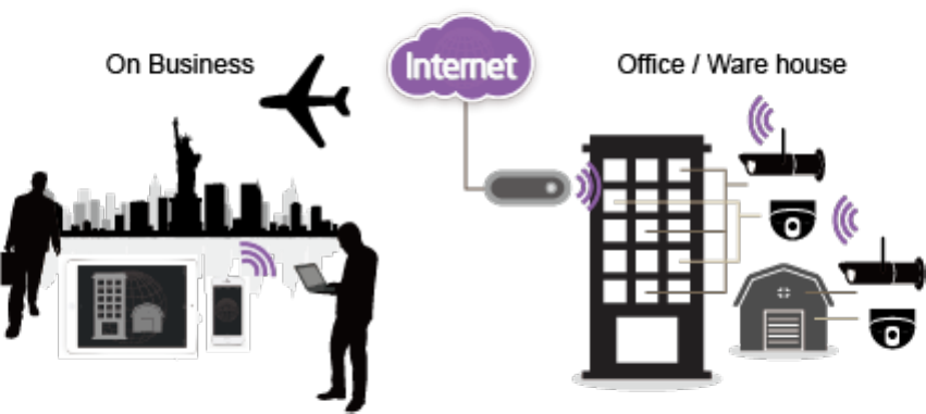 The application concept diagram shows a camera monitoring the property like office or warehouse. The management staff wants to remotely