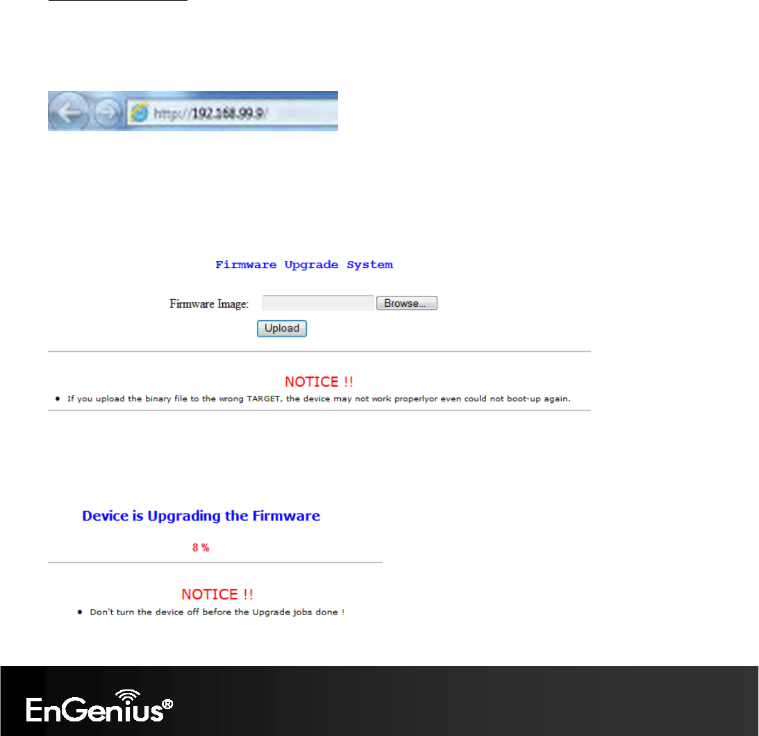 1. Enter IP address: 192.168.99.9 and enter Emergency Upgrade WEB page.