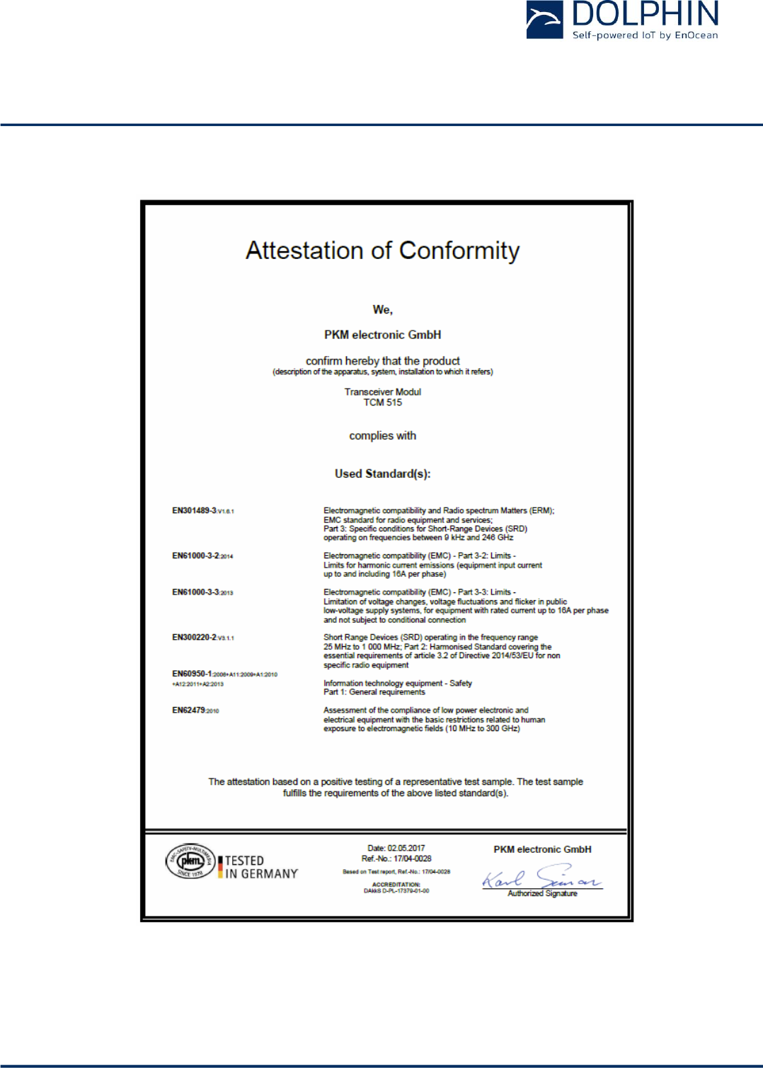© 2017 EnOcean | www.enocean.com F-710-017, V1.0 TCM 515 User Manual | v1.2 | June 2017 | Page 4/41