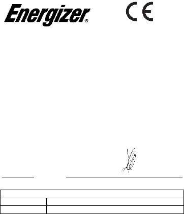 ENERGIZER complies with the standards and provisions of the directives. The