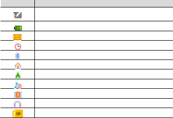 screen, indicating the status of the phone: