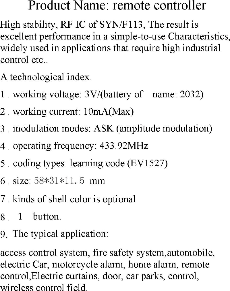 Energy Technology Laboratories YL13-5 remote controller User Manual