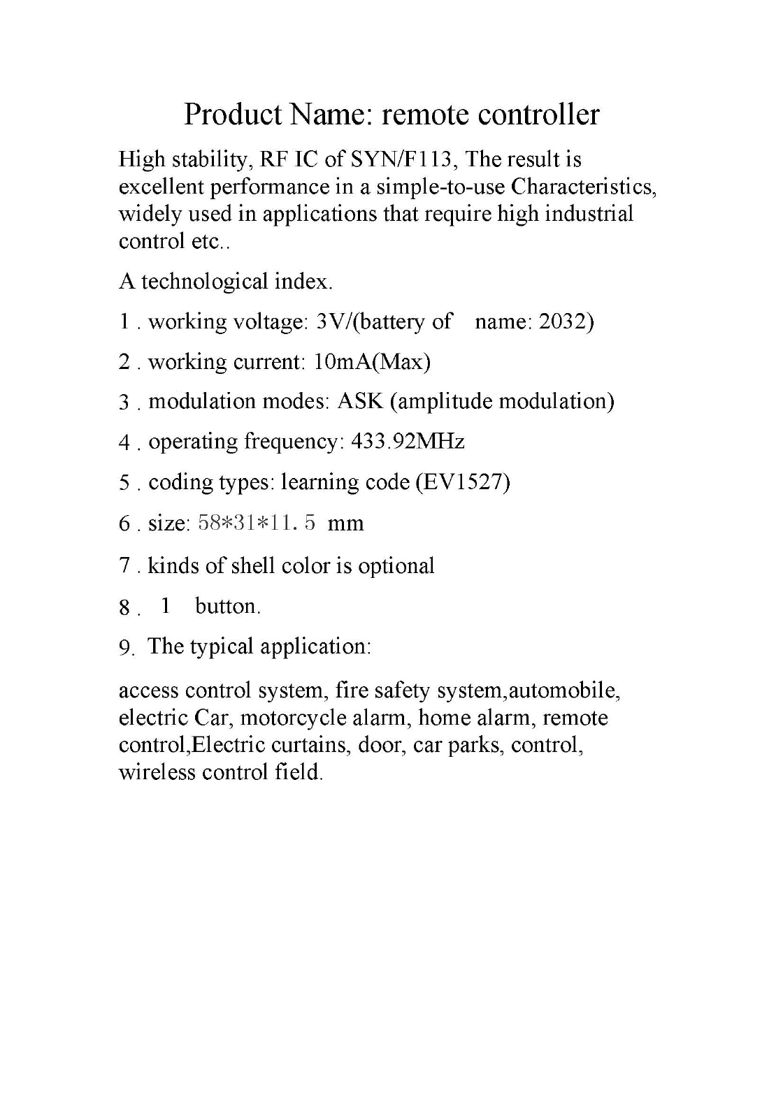 Energy Technology Laboratories YL13-5 remote controller User Manual