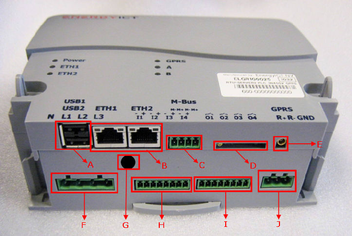 E. GSM/GPRS antenna connector J. RS-485 connector