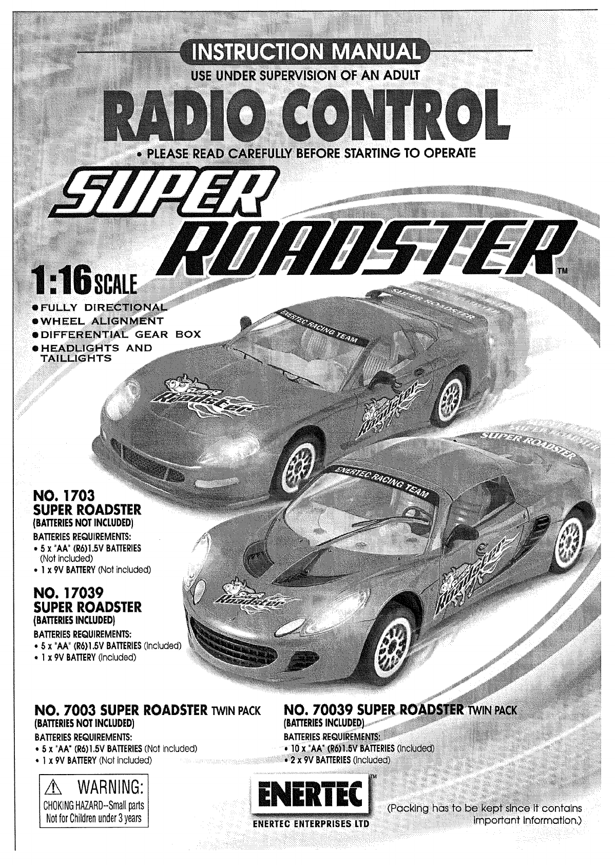 Enertec Enterprises Ltd. 27 MHz R/C Super Roadster USERS MANUAL