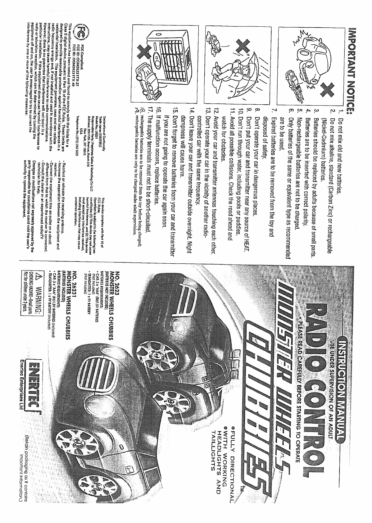 Enertec Enterprises Ltd. R/C MONSTER WHEELS CHUBBIES USERS MANUAL