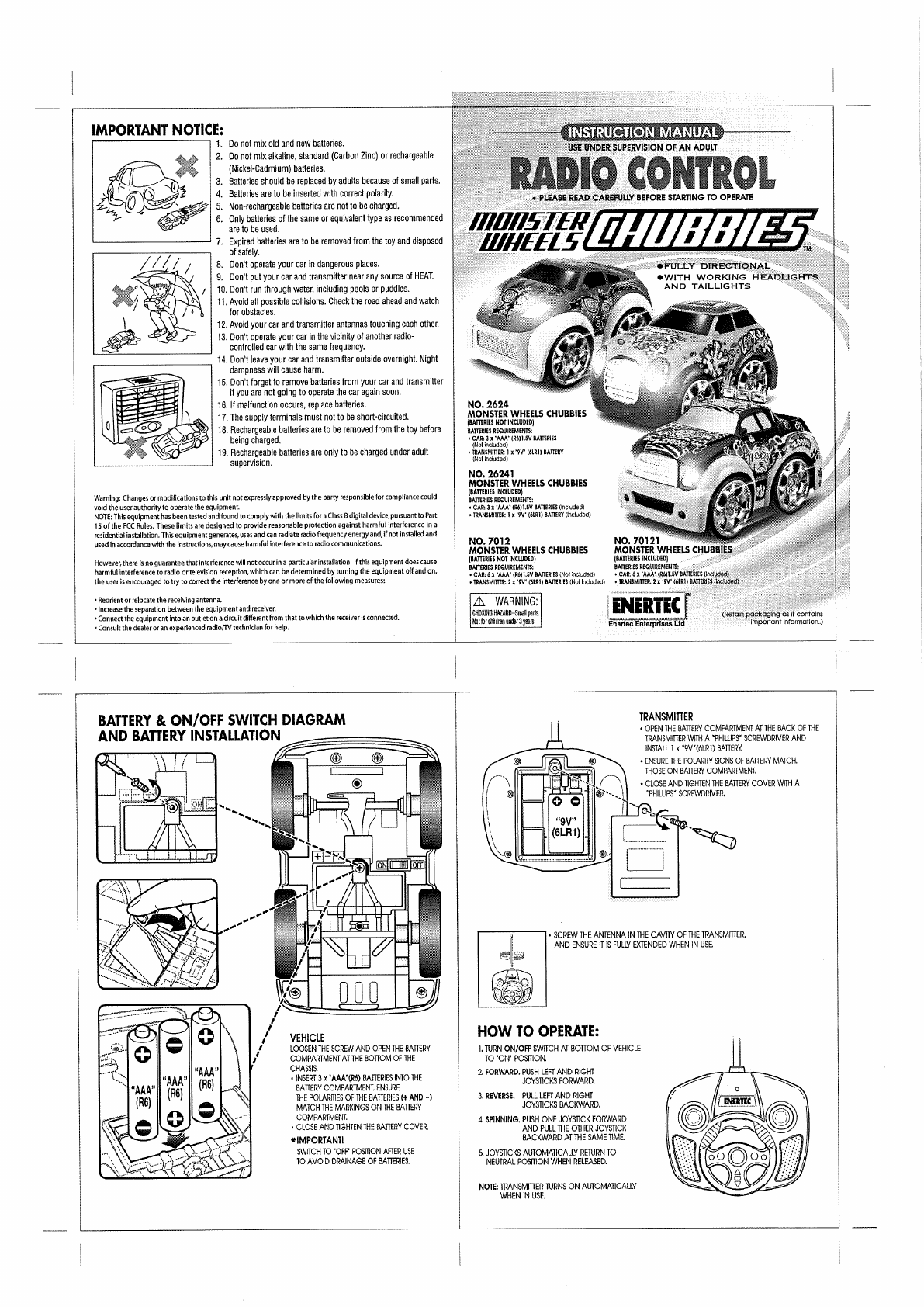 Enertec Enterprises Ltd. R/C MONSTER WHEELS CHUBBIES Users Manual