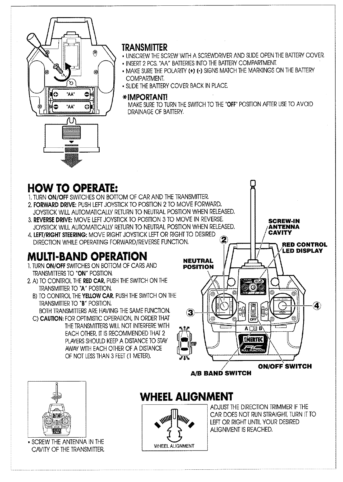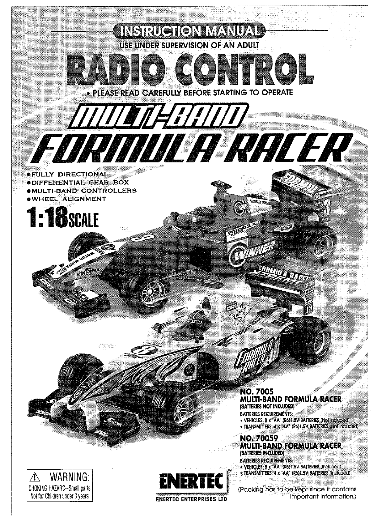 Enertec Enterprises Ltd. R/C MULTI-BAND FORMULA RACER USERS MANUAL