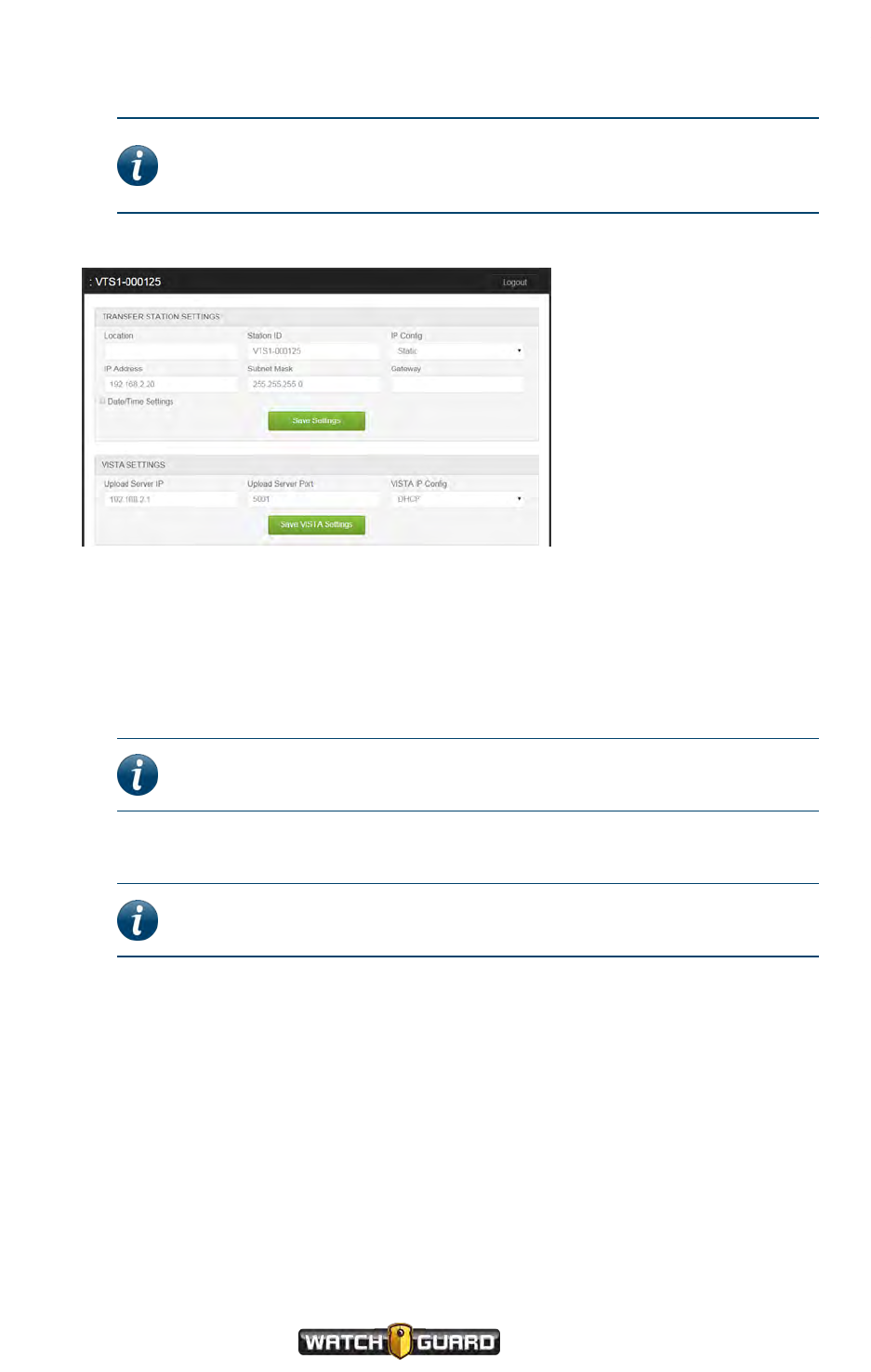 VISTA Settings, Transfer Station, 122