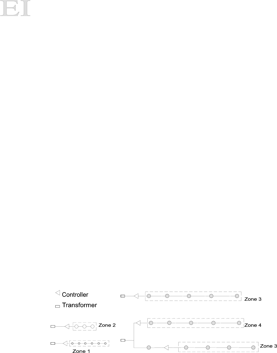zones 1, 2, 3, and 4 are controlled separately. Notice that multiple controllers can be connected to a single transformer