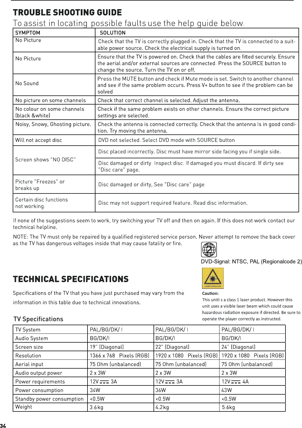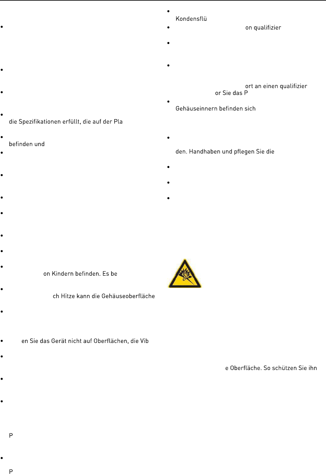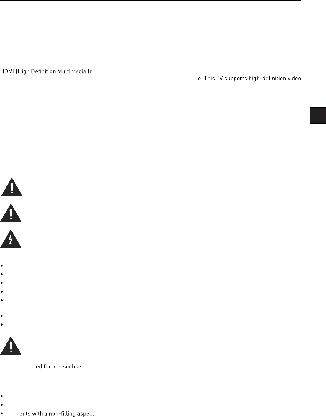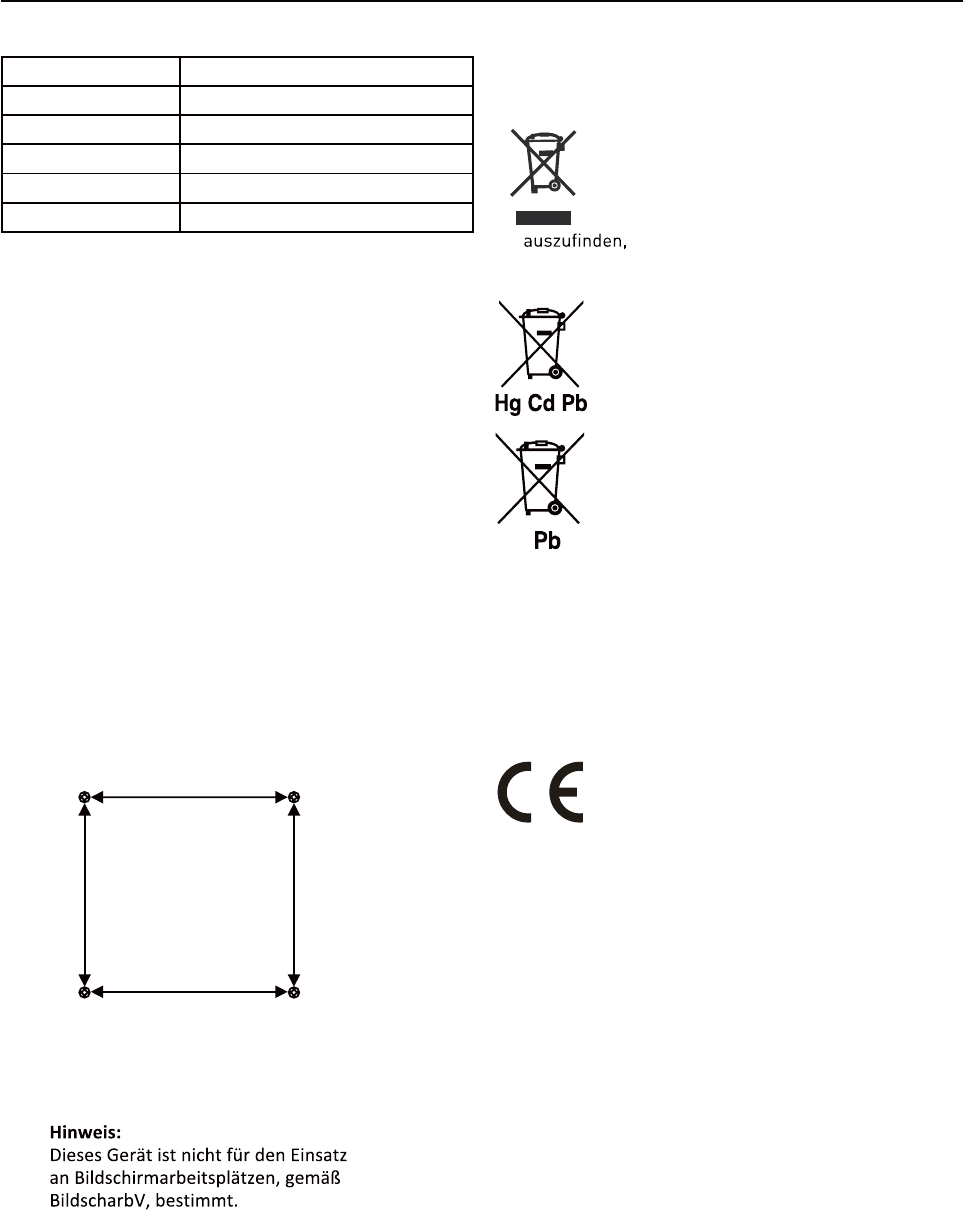 Folgende Sicherheitshinweise sind auf der Geräterückseite des Fernseher
