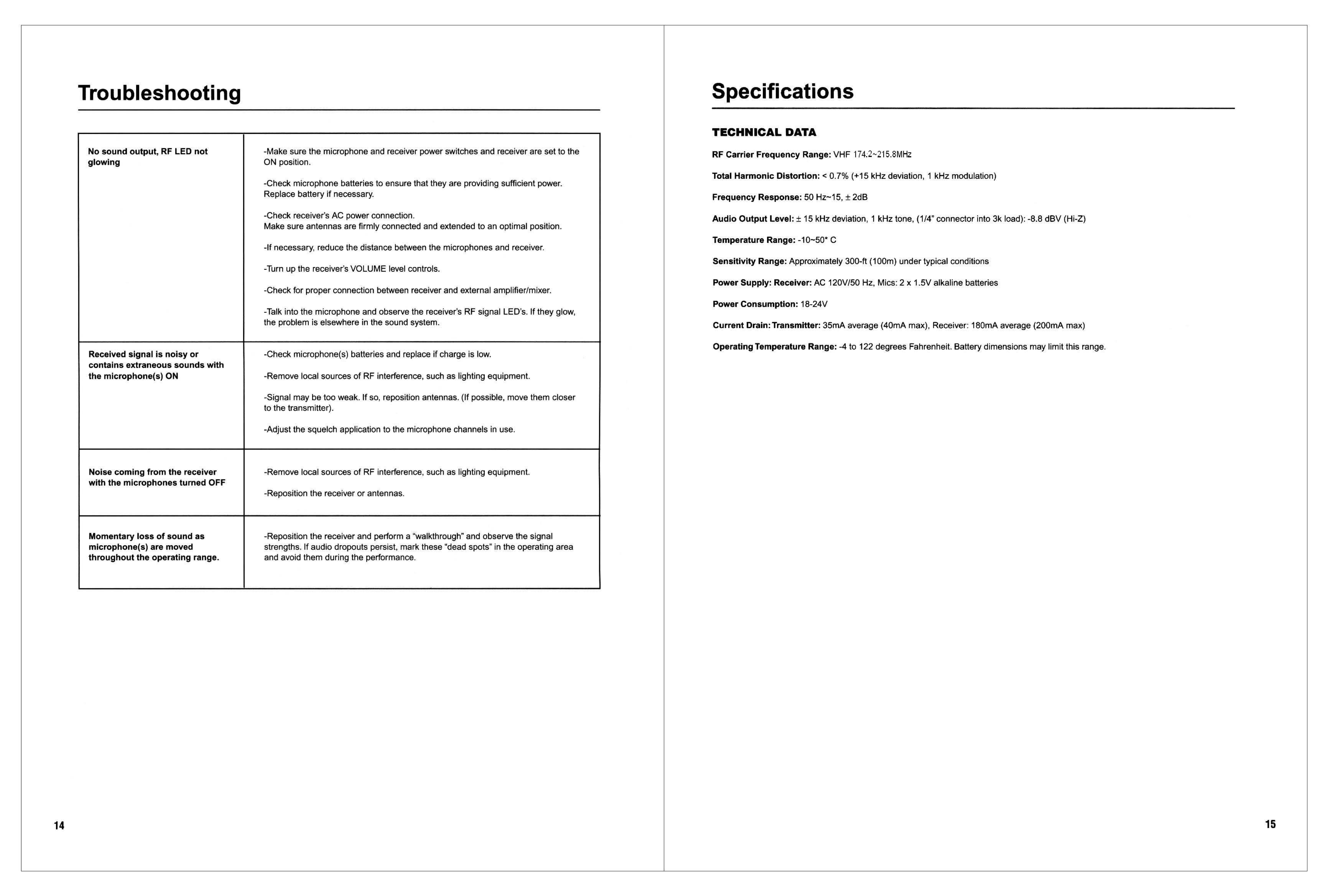 Enping Ding Li Acoustics Technological VHF-4808 Wireless Microphone User Manual VHF 4808