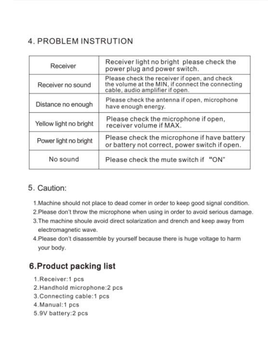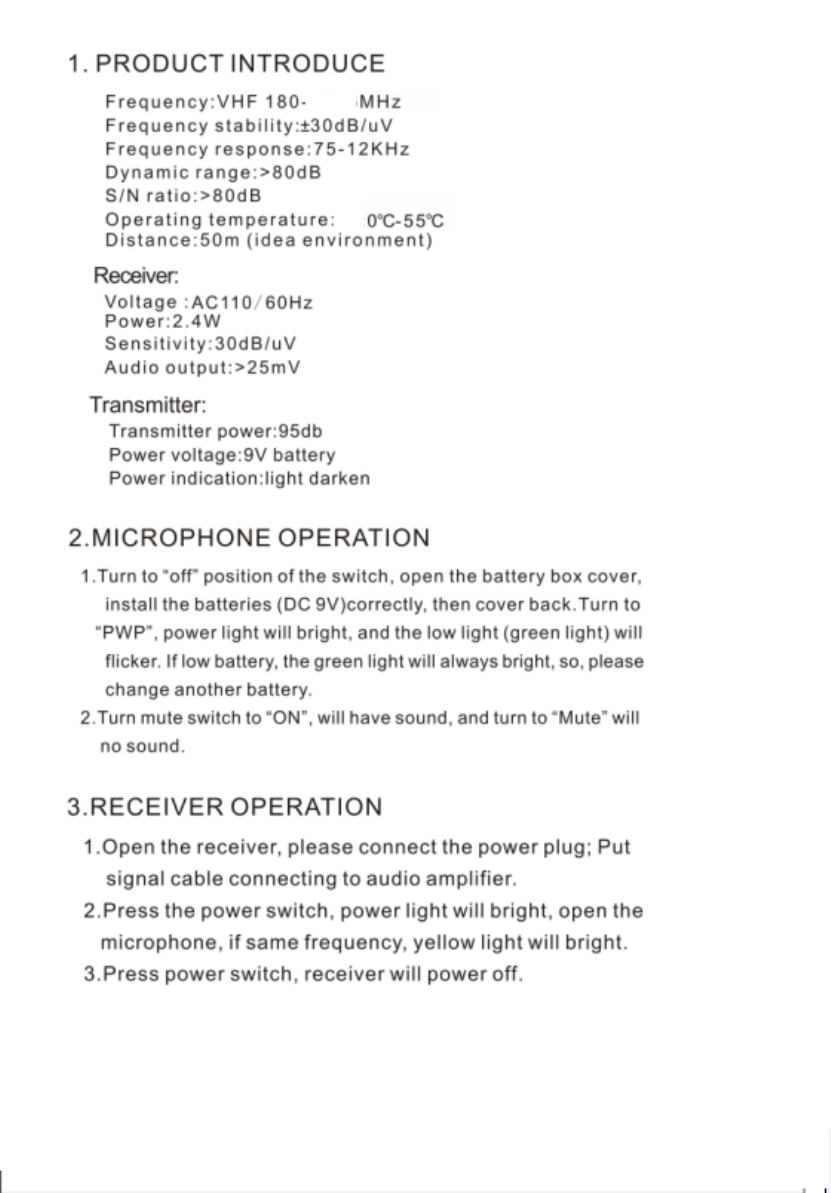 Enping Misha Electronic MA-338 Wireless microphone User Manual x