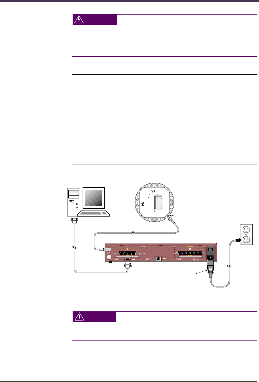 •Plug the CPE power cord into a 110 VAC power outlet as