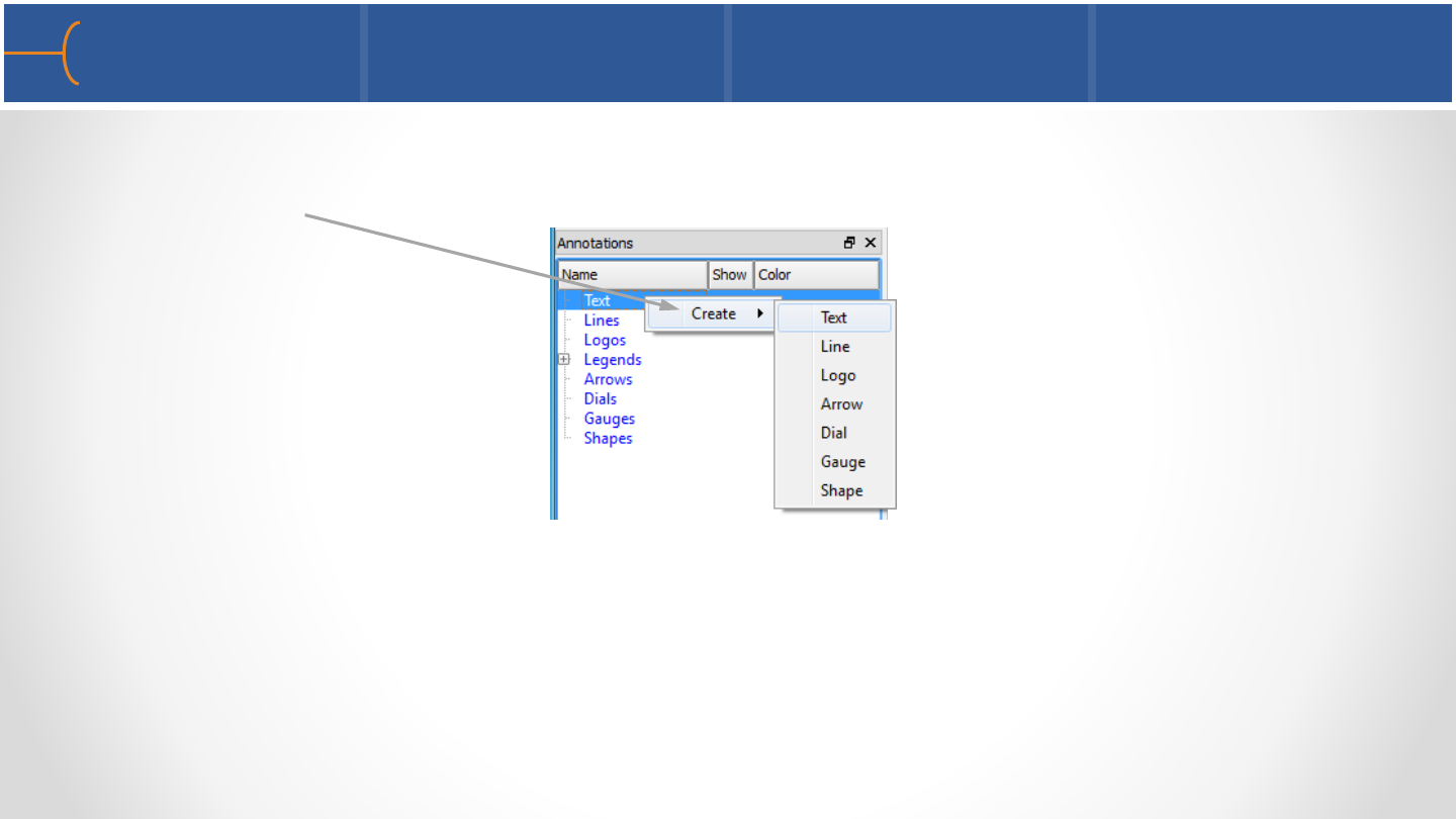•Create a gauge by right clicking one of the Annotations keywords in the