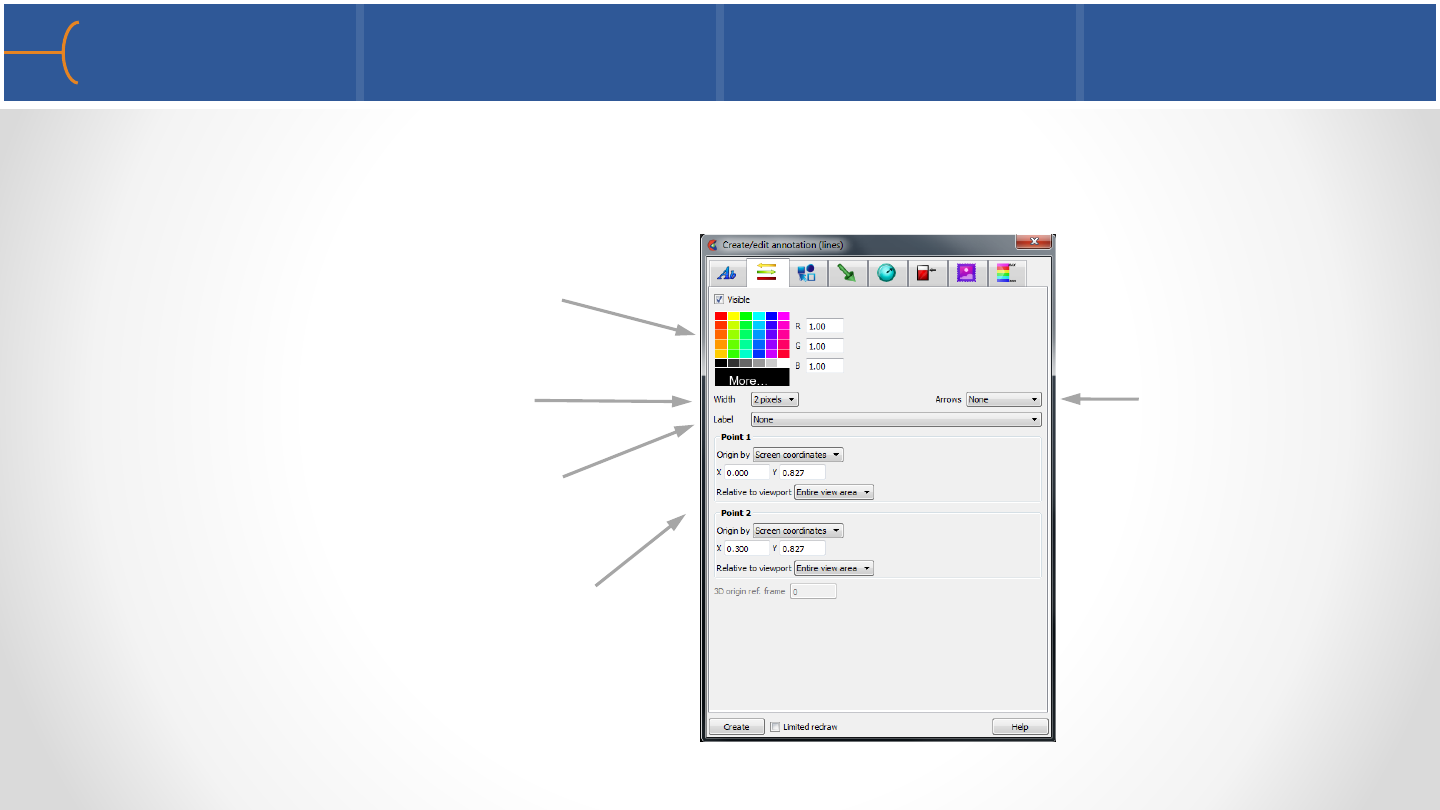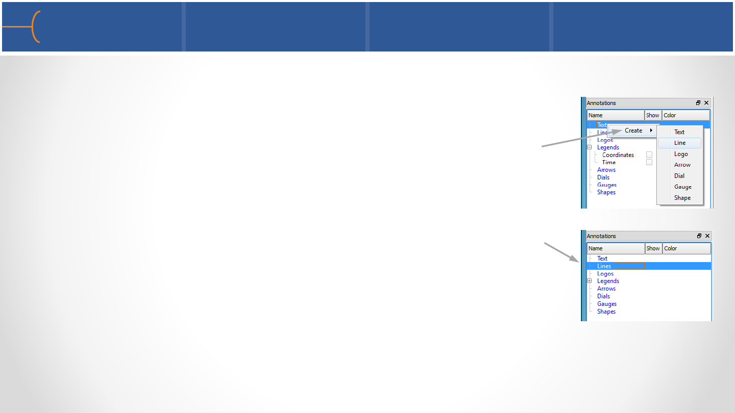 Annotations Tab of the Object Lists and selecting Create -> Shape