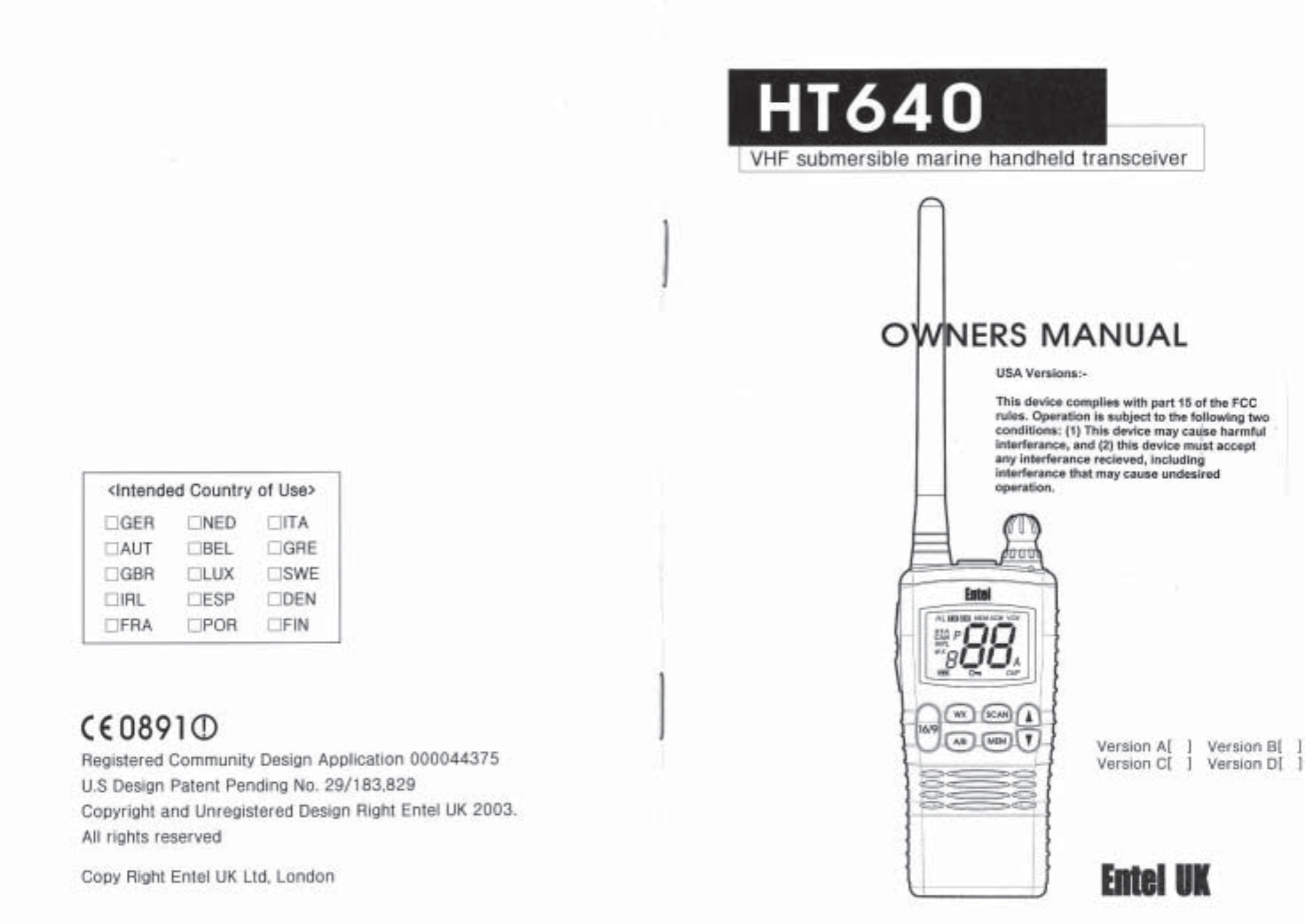 Changes or modifications to this device, not expressly Approved by Entel UK could invalidate your authority to operate this device under FCC regulations.