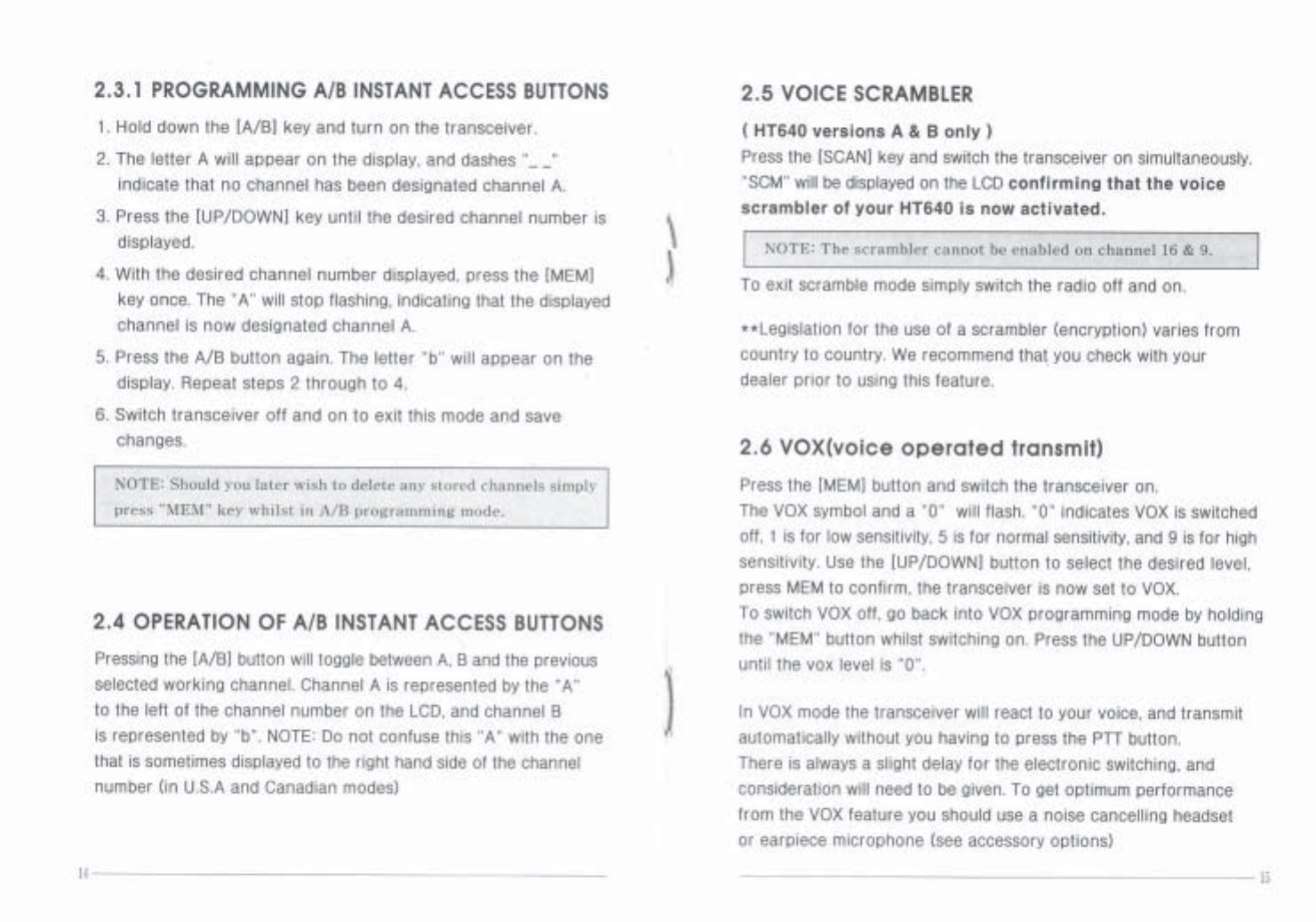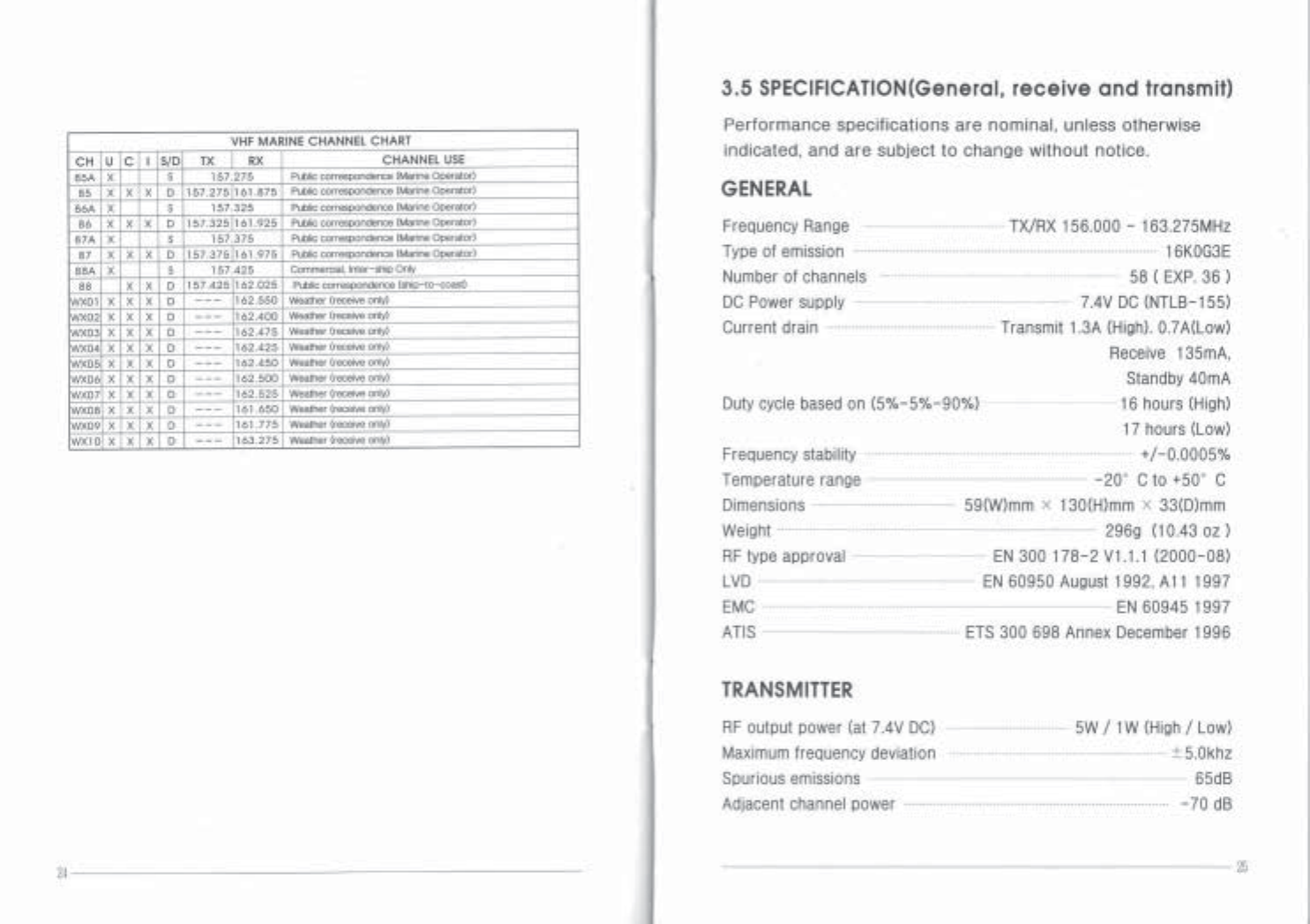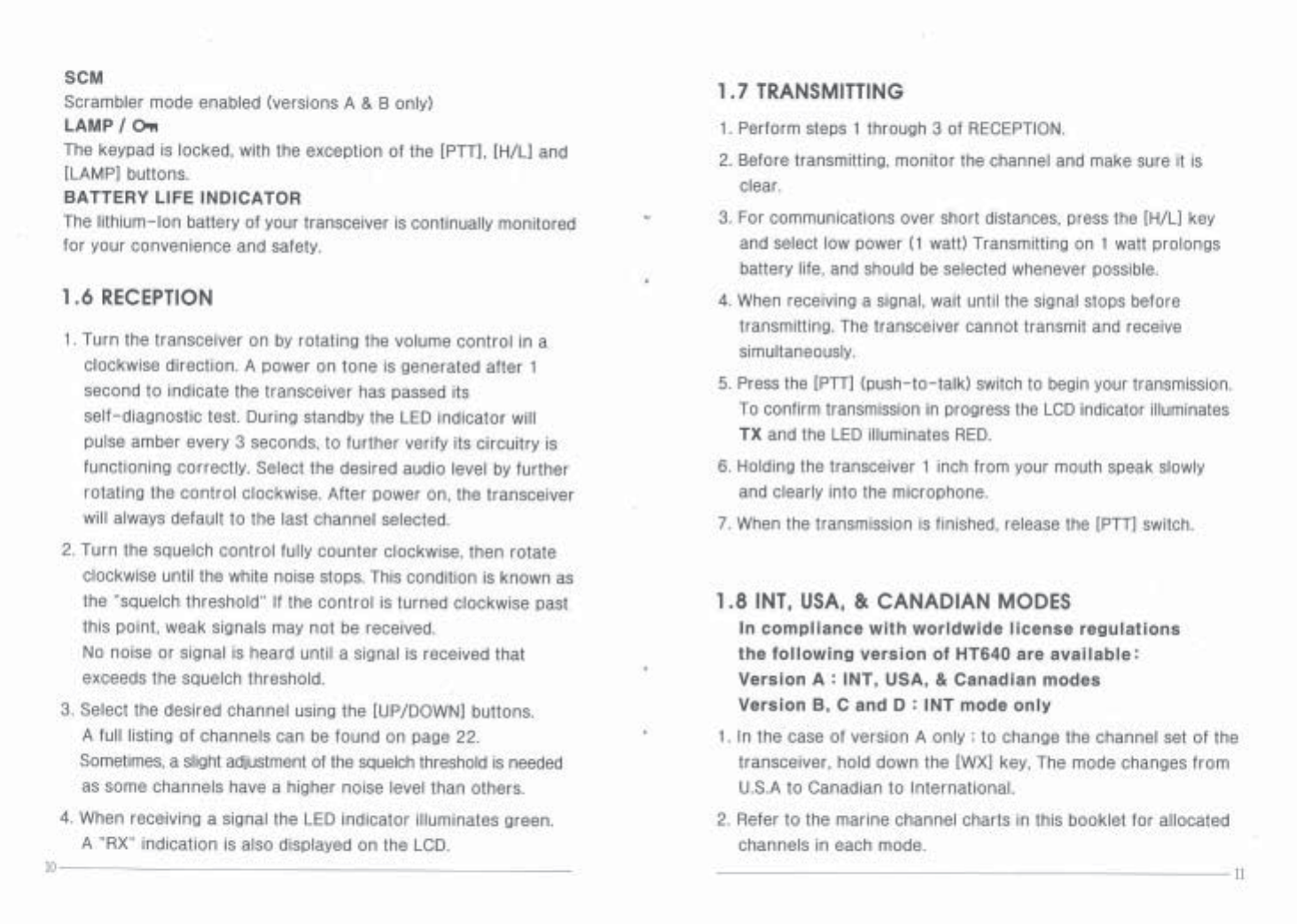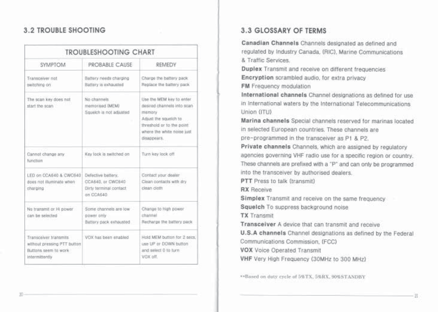 transmission the best sound quality, hold the transceiver at least 5 cm (2 inches) from your mouth, and slightly off to one side. The information listed above