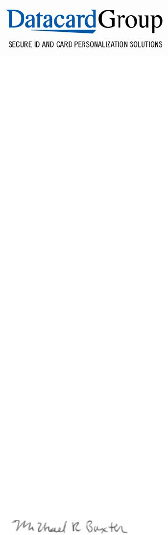 CAUTION: Changes or modifications not expressly approved by Datacard Group could void the user’s