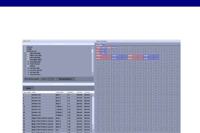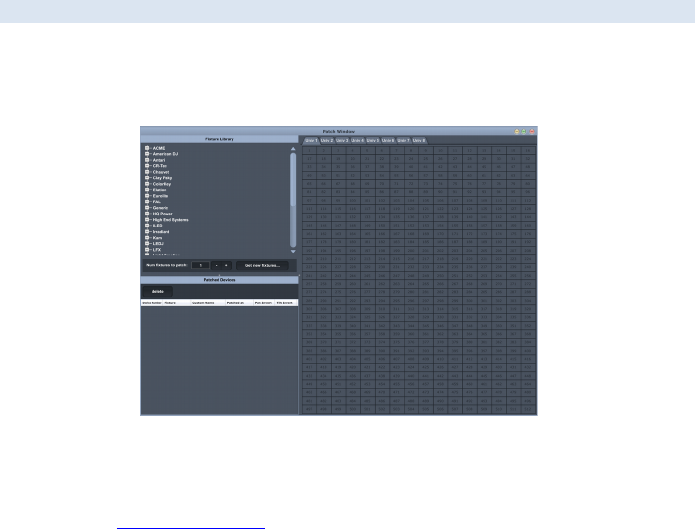 •Patch window: Window contents are updated immediately when new fixtures imported
