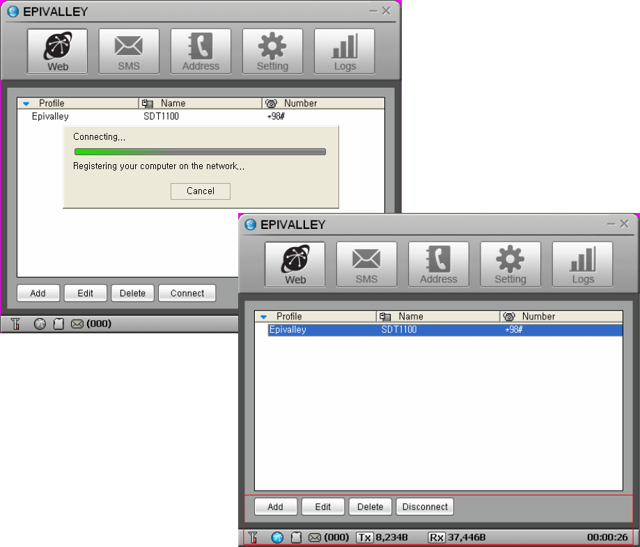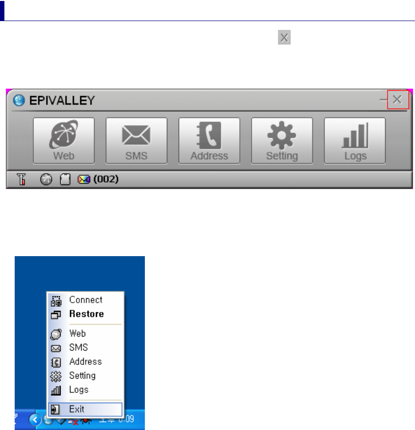 To terminate Epivalley HSDPA Dialer program, click at the right top of the