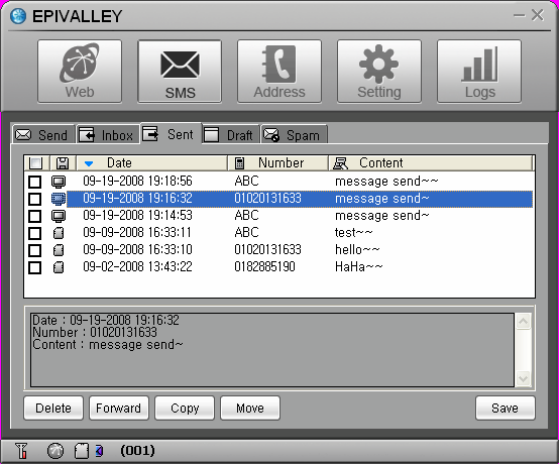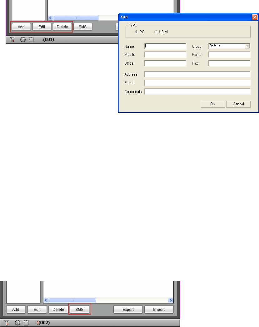 [SMS] button at the lowest part of Address Menu. Check the telephone