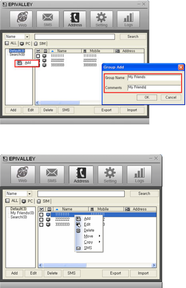 폰북 리스트를 export 및 import 를 할 수 있다.