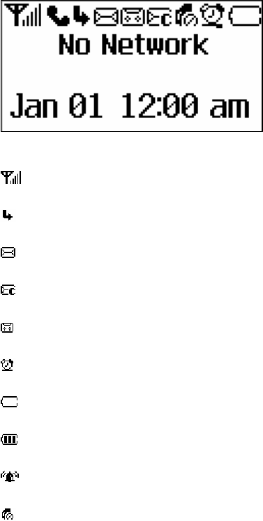 timeand date. You can now place and receive calls. If the phone isout of the service area, the No Service Message will