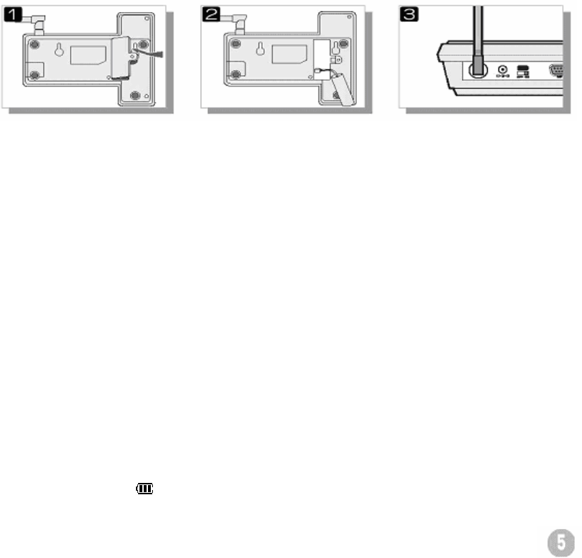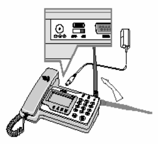 1. With Battery in position on the phone, plug in GSM Phone power adaptor to the back of the unit.